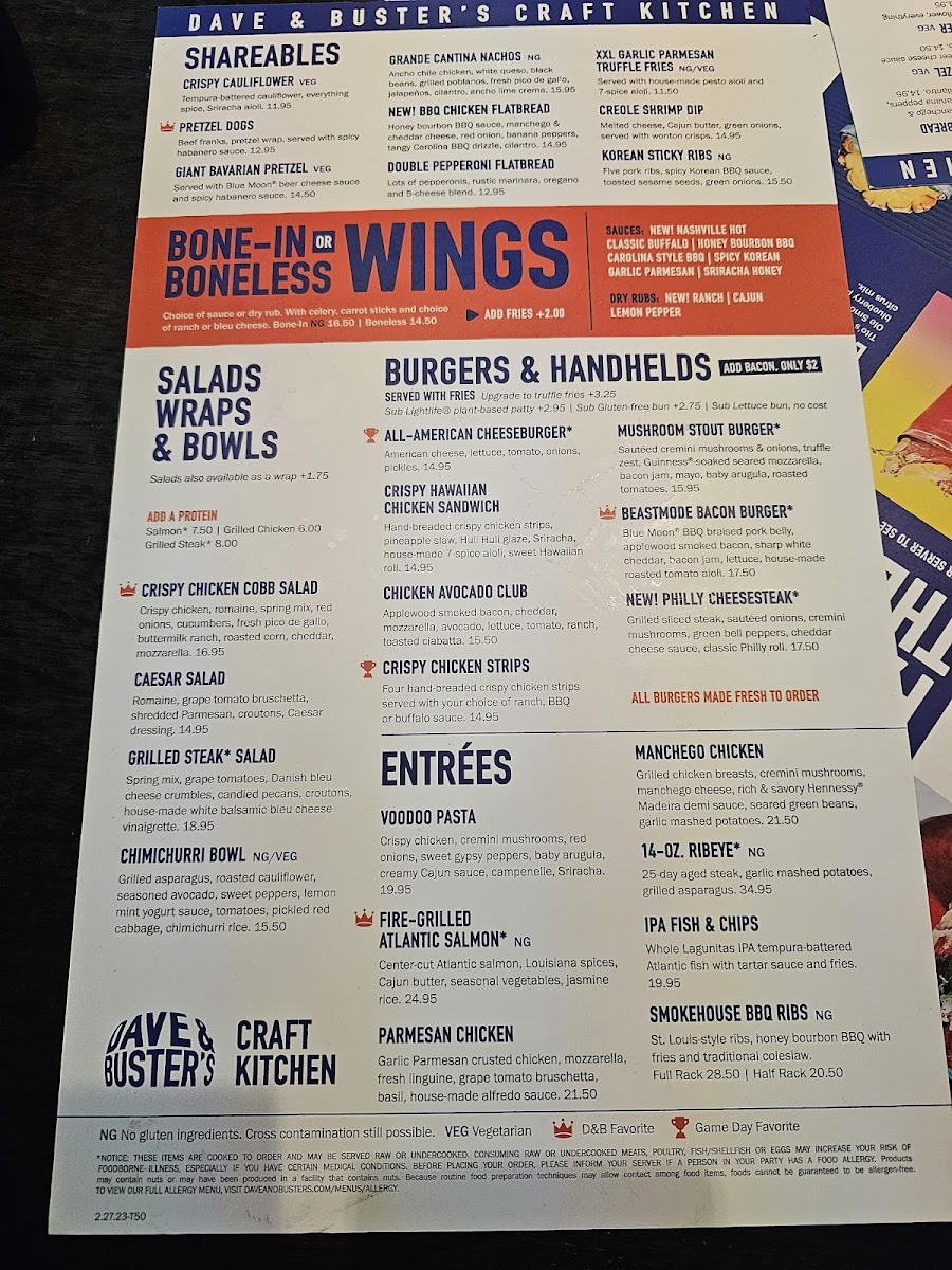 Introducing the menu at Dave & Buster's Carlsbad is a culinary adventure that complements its vibrant gaming atmosphere. Located in the heart of Carlsbad, this venue not only offers thrilling arcade experiences but also a diverse selection of mouth-watering dishes.